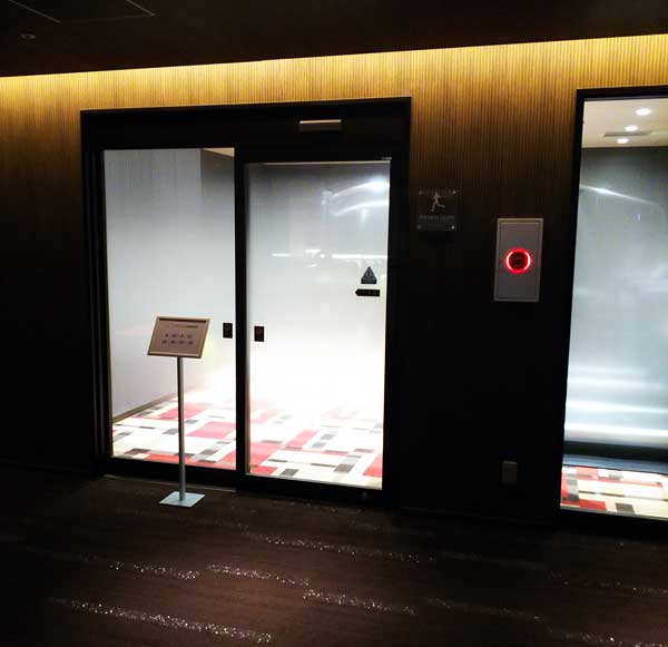 またホテルを利用する際はイコットニコット内のエレベーターではなく、6階のホテルフロント直通エレベーターを利用します(イコットニコット内のエレベーターでは6階ホテルに行けません)。